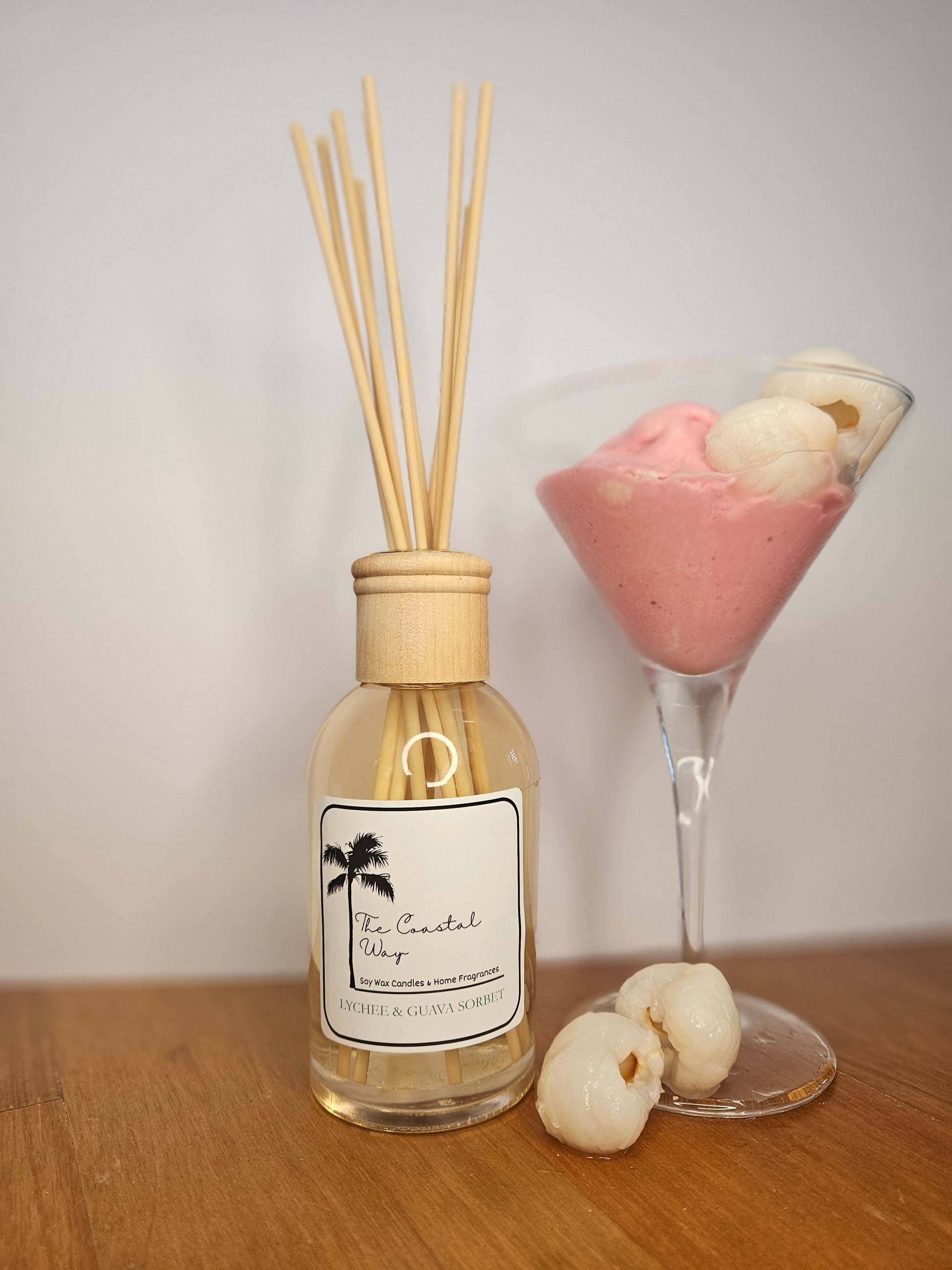 Refresh your space with the tropical delight of our Lychee & Guava Sorbet Reed Diffuser. This vibrant blend of juicy lychee and sweet guava creates a fruity, invigorating aroma that fills your room with a burst of exotic freshness. Enjoy a continuous, uplifting fragrance that adds a touch of tropical bliss to any space.